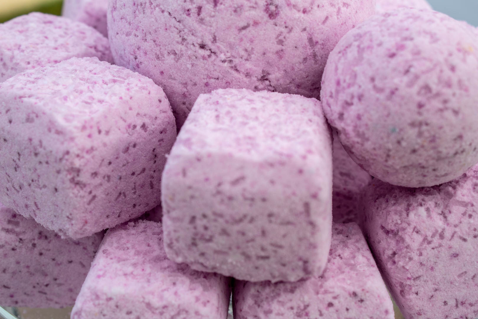 | Ingredients | Baking Soda, Citric Acid, Cream of Tartar (not in all batches), Epsom Salt, FDA Approved Edible Colouring, Organic Coconut Oil, Vegan Essential Oil, Witch Hazel Extract |